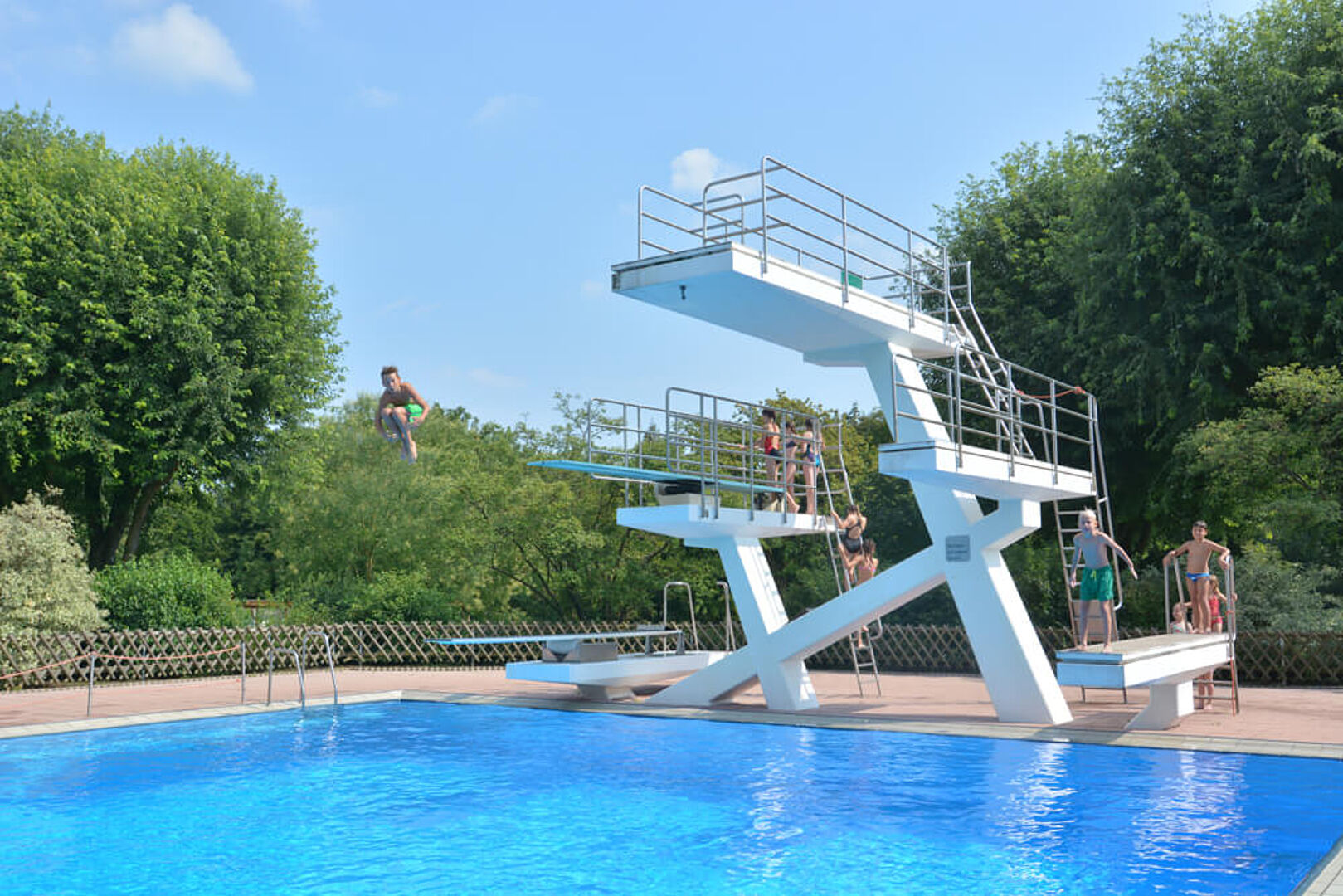 Aktion, Spaß und Nervenkitzel finden Sie beim Sprungbecken. Der 1 Meter Sprungturm lädt zu ersten Sprüngen ein. Der 3 Meter Turm ist dann die Erweiterung und ganz Mutige wagen sich auf den 5 Meter Sprungturm.